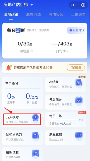 方法2:直接使用微信掃下方二維碼,進(jìn)入房估萬(wàn)人??纪ǖ?,選擇要參加的科目進(jìn)行模考。