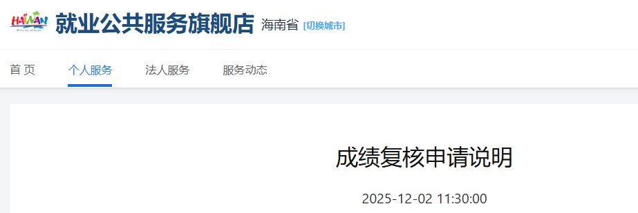 海南省就業(yè)公共服務(wù)旗艦店發(fā)布成績(jī)復(fù)核申請(qǐng)說(shuō)明,具體信息如下: