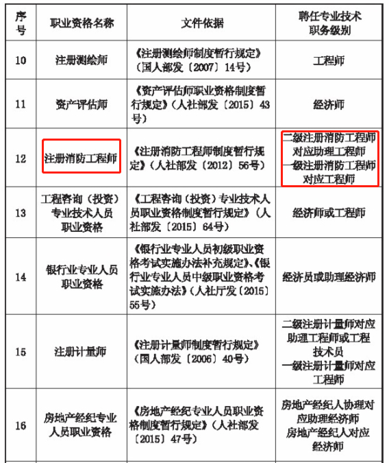 秦皇島人社局:一級(jí)消防工程師對(duì)應(yīng)助理工程師職稱(chēng)