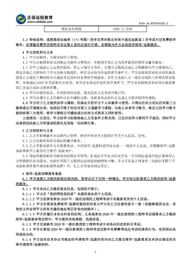 2020年一級(jí)注冊消防工程師高效實(shí)驗(yàn)班協(xié)議書