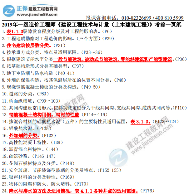2019年一級(jí)造價(jià)師考試即將開考,為了幫助考生高效進(jìn)行考前復(fù)習(xí),拿到更多分?jǐn)?shù),爭(zhēng)取順利備考,建設(shè)工程教育網(wǎng)的老師們精心整理了“2019一級(jí)造價(jià)師考前一頁紙”考前必備資料,免費(fèi)發(fā)給大家,領(lǐng)取吧!