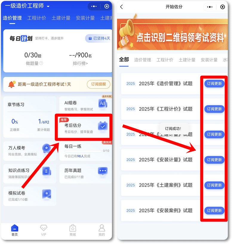 2025年一級造價(jià)師出考場,心里沒底?想知道考得怎么樣?快來【正保刷題寶】小程序進(jìn)行考后估分!真題持續(xù)更新中,配有詳細(xì)解析,幫你提前預(yù)估分?jǐn)?shù),做到心中有數(shù)。快來試試吧!