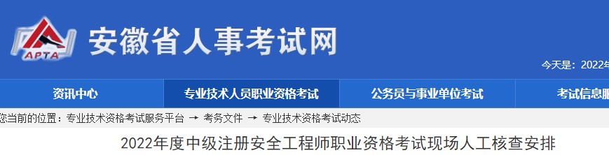 安徽?2022年度中級注冊安全工程師職業(yè)資格考試現(xiàn)場人工核查安排