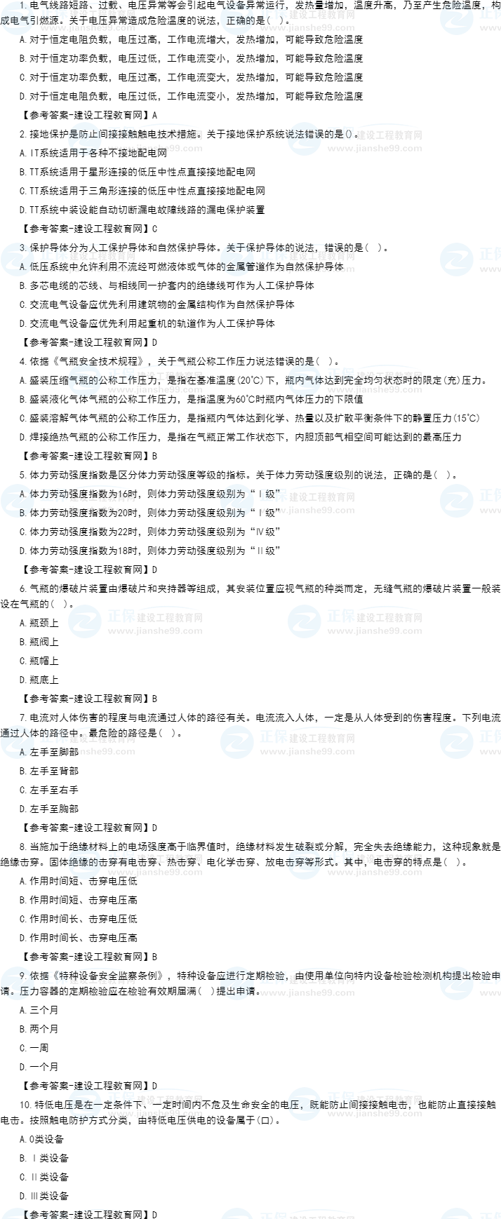 2021年中級(jí)安全工程師生產(chǎn)技術(shù)試題第1-10題答案