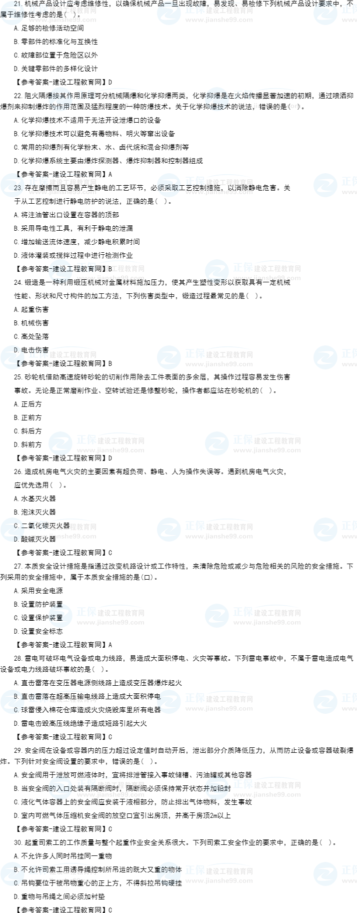 2021年安全工程師生產(chǎn)技術(shù)試題第21-30題答案