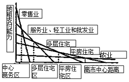 圖3-8 城市內(nèi)不同用途的地租支付能力
