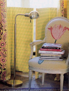 9.淺黃淡綠的屏風(fēng)是用來遮擋落地大窗的,屏風(fēng)不高,一面讓上半部的窗子依然透進天光,一面也維持了整間房的綠色格調(diào)。