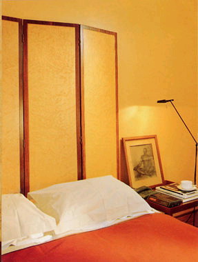 4.把楓木和棕櫚木制成的屏風(fēng)與臥床放在一起,就成了十分別致的床頭板。這樣的裝飾手段可不是隨便誰都能想出來的。