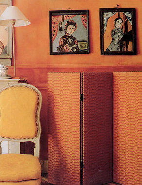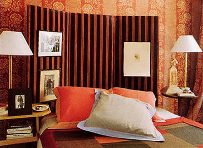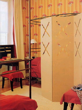 5.伊弗。哈拉特設(shè)計的條紋布料屏風(fēng),色調(diào)凝重。在屏風(fēng)上不規(guī)則地掛幾幅畫,又成了居室里的一道風(fēng)景線。