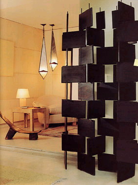 2.埃倫。格雷設(shè)計的黑漆木制層疊屏風(fēng),一方面使單色的墻面變得豐富起來;另一方面,它也像一件前衛(wèi)作品,給居室增加了不少藝術(shù)的氛圍。"
