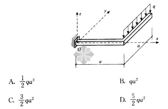 7、圖中構(gòu)件在固定支座O點處繞y軸的支座彎矩My為( )。
