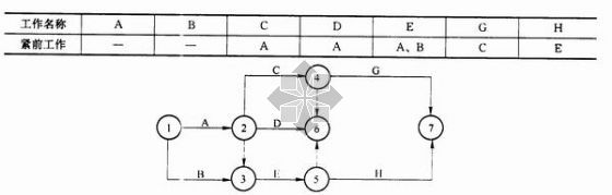 3、根據(jù)下表給定的邏輯關(guān)系繪制的某分部工程雙代號網(wǎng)絡(luò)計(jì)劃如下圖所示,根據(jù)雙代號網(wǎng)絡(luò)計(jì)劃的繪圖規(guī)則,其作圖錯(cuò)誤是( )。