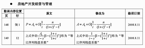 2008年全國房地產(chǎn)估價師執(zhí)業(yè)資格考試用書勘誤說明