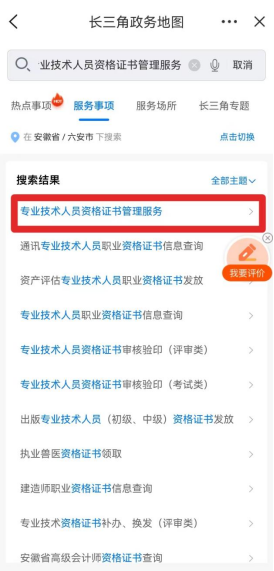 第三步:搜索服務(wù)事項(xiàng)“專業(yè)技術(shù)人員資格證書管理服務(wù)”。