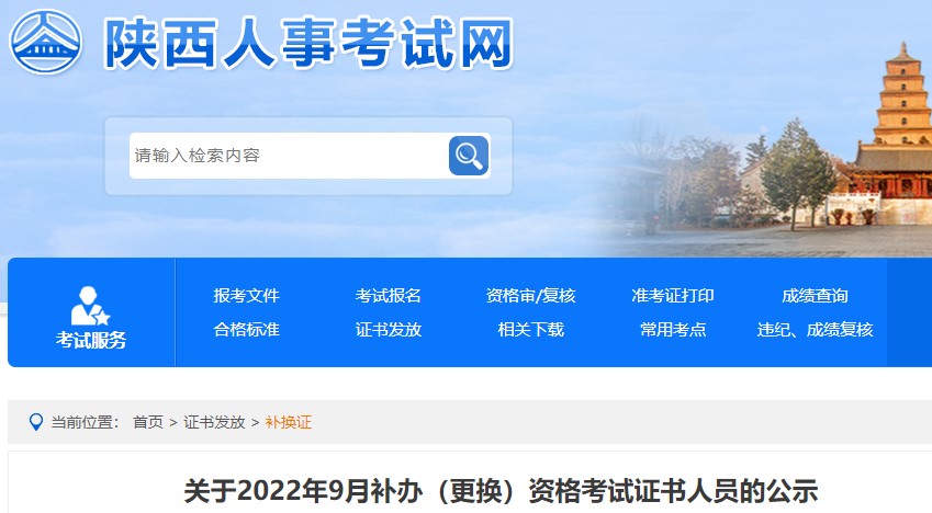 2022年9月需要補(bǔ)辦(更換)的證書資料公示期滿后送人社部人事考試中心,待補(bǔ)辦證書發(fā)放至我省后,我們將及時組織發(fā)放,請關(guān)注陜西省人事考試中心官網(wǎng)或公眾微信號sxrskswx,及時獲取辦證資訊。