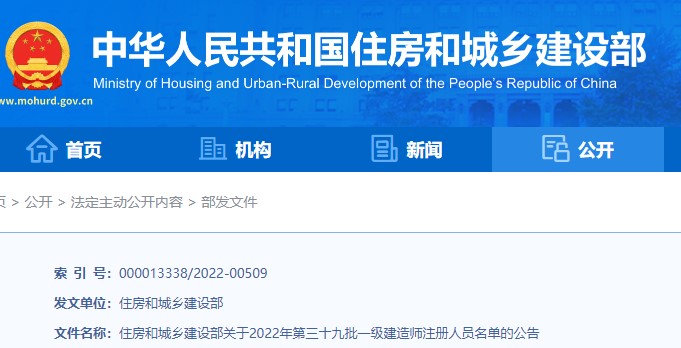 ?住房和城鄉(xiāng)建設(shè)部關(guān)于2022年第三十九批一級(jí)建造師注冊(cè)人員名單公告