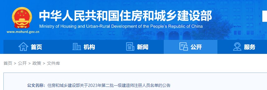 住房和城鄉(xiāng)建設(shè)部關(guān)于2023年第二批一級(jí)建造師注冊(cè)人員名單的公告