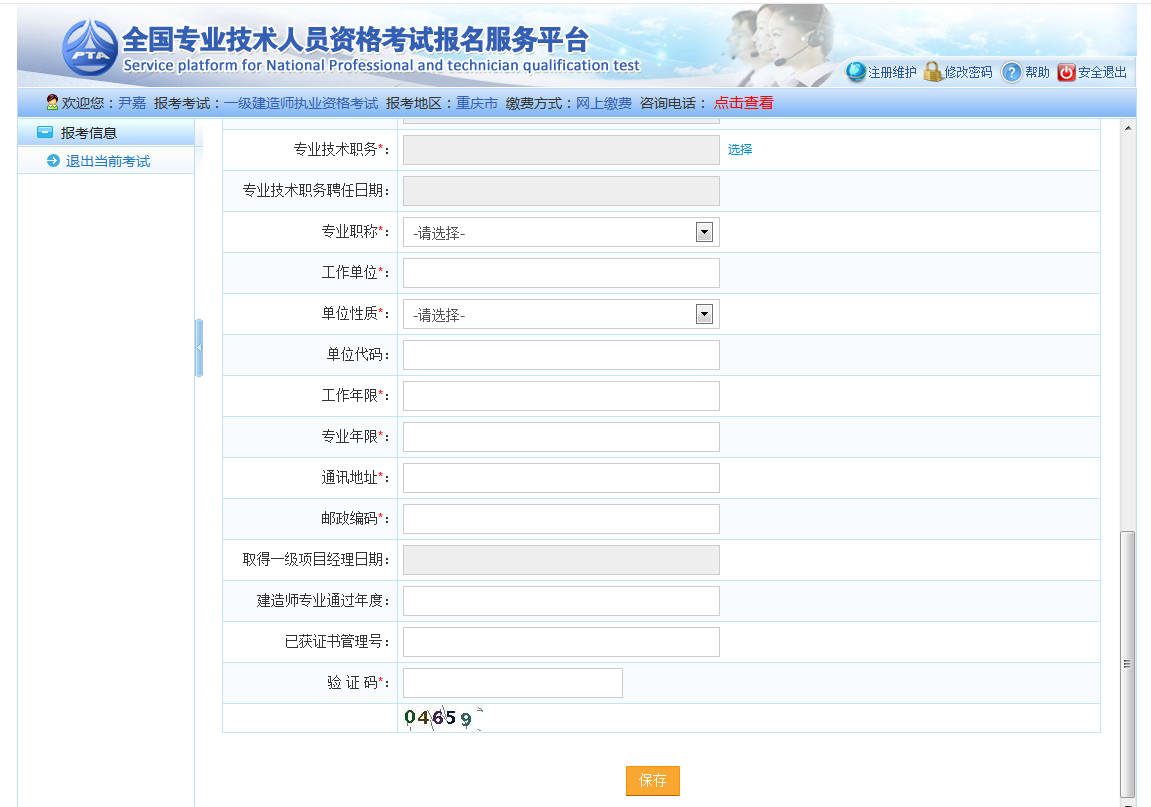 考生填完報名信息后點擊保存按鈕,完成報名。