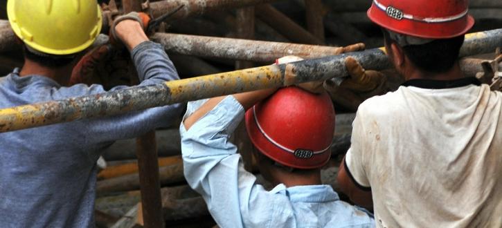 建筑工人長(zhǎng)年櫛風(fēng)沐雨,住在簡(jiǎn)陋的工房,他們?yōu)槌鞘辛粝赂邩谴髲B,學(xué)校,工廠等等,為祖國(guó)裁剪新裝,向你們敬禮!您們辛苦了。