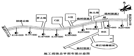 施工現(xiàn)場總平面布置示意圖如下圖所示,現(xiàn)場需在A、B、C三個區(qū)域分別布置橋梁梁板預(yù)制場(含水泥混凝土拌合站)、水泥穩(wěn)定土拌合站和承包人駐地三種臨時工程。