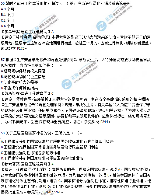 2019年二級(jí)建造師法規(guī)考試真題及答案解析56-60