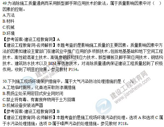 2019年二級建造師《建設(shè)工程施工管理》試題及答案解析46-50