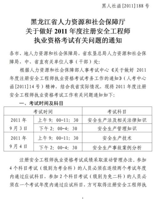 2011年黑龍江省安全工程師報名時間為4月19日-5月11日