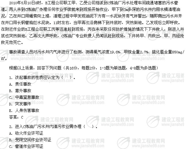 8.在C煉油廠污水井內(nèi)作業(yè)可能發(fā)生的事故包括( )。