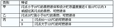 表2-19貯存易燃、可燃液體的火災危險性分類