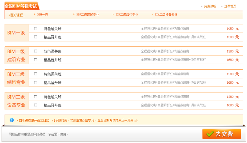 全國BIM技能等級考試為一年兩次,上半年6月考試,下半年12月考試,每期具體日期需協(xié)會通知?荚噲竺M(fèi)350元/人。