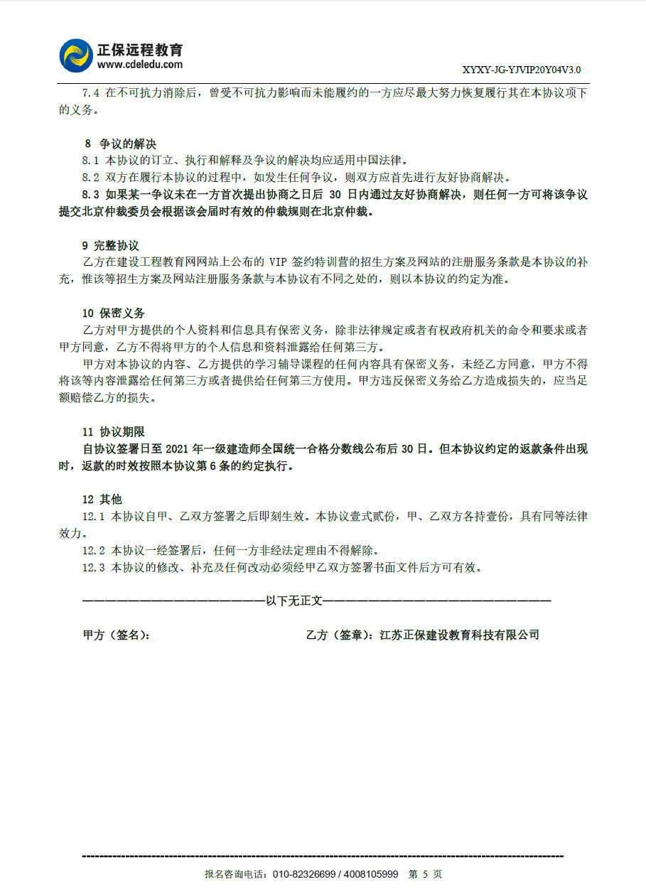 2020年一級建造師VIP簽約特訓(xùn)營(全科)協(xié)議書