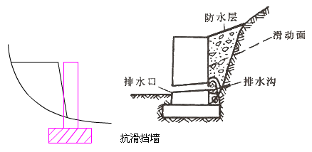 在滑坡體上方修筑截水設(shè)施,在滑坡體下方筑好排水設(shè)施;經(jīng)過論證方可以在滑坡體的上部刷方減重以防止滑坡,未經(jīng)論證不要輕易擾動滑坡體。不能在上部刷方減重的,可考慮在滑坡體坡腳采用擋土墻、抗滑樁等支擋措施,也可采用固結(jié)灌漿等措施改善滑動面和滑坡體的抗滑性能。