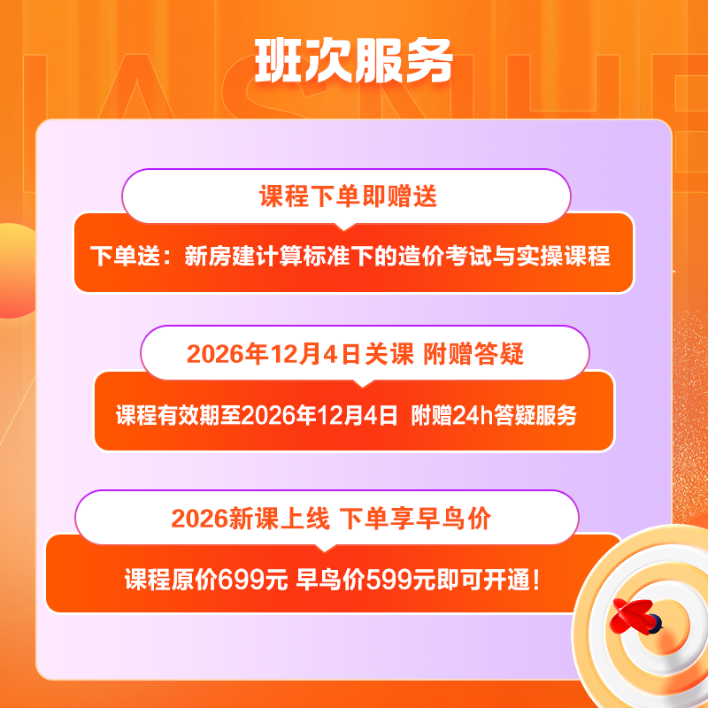 限時贈送課程:下單送《新房建計算標(biāo)準(zhǔn)下的造價考試與實(shí)操課程搭配學(xué)習(xí)