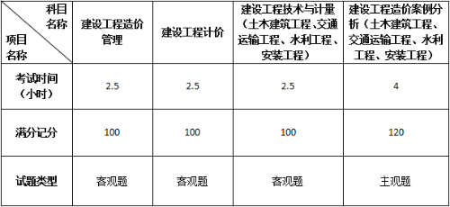 | 造 價 工 程 師 | 每年十月的中、下旬 | 上午:9:00~11:30 建設(shè)工程造價管理 下午:2:00~4:30 建設(shè)工程計價 | 備 注 |