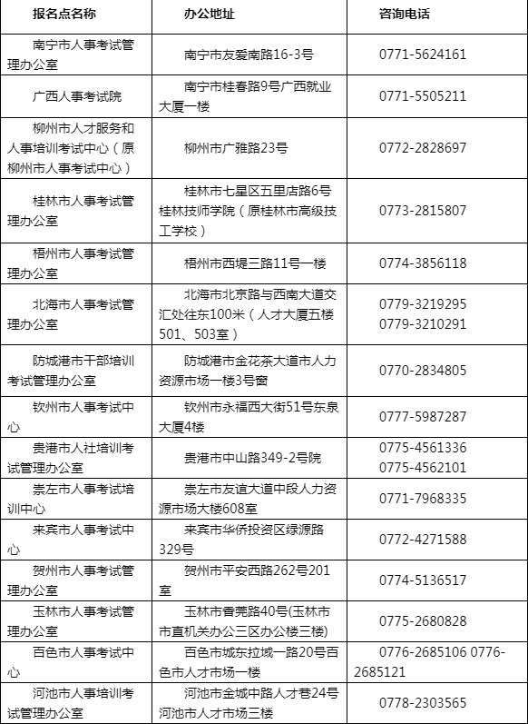 現(xiàn)場(chǎng)審核對(duì)象是不適用告知承諾制的報(bào)考人員,即被記入專(zhuān)業(yè)技術(shù)人員資格考試誠(chéng)信檔案庫(kù)且在記錄期內(nèi)的應(yīng)試人員。在網(wǎng)上報(bào)名系統(tǒng)填寫(xiě)報(bào)考信息時(shí),將收到本次報(bào)名審核不適用告知承諾制的提示,請(qǐng)持本人居民身份證、學(xué)歷、學(xué)位證書(shū)原件和相關(guān)專(zhuān)業(yè)技術(shù)職務(wù)任職資格證書(shū)原件(原件經(jīng)審核后退還),《資格考試報(bào)名表》1份,于2019年8月19日至20日到各市人事考試機(jī)構(gòu)進(jìn)行現(xiàn)場(chǎng)審核,全區(qū)人事考試機(jī)構(gòu)現(xiàn)場(chǎng)審核地址及聯(lián)系方式如下: