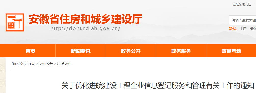 為優(yōu)化建筑市場(chǎng)營(yíng)商環(huán)境,進(jìn)一步推進(jìn)“放管服”改革,加快建立健全統(tǒng)一開放、競(jìng)爭(zhēng)有序的建筑市場(chǎng)體系,現(xiàn)就優(yōu)化省外進(jìn)皖建設(shè)工程企業(yè)信息登記服務(wù)和管理有關(guān)事項(xiàng)通知如下:
