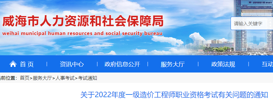威海市關于2022年度一級造價工程師職業(yè)資格考試有關問題的通知