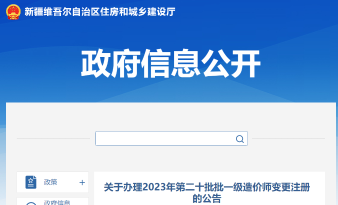 新疆關(guān)于辦理2023年第20批一級(jí)造價(jià)師變更注冊(cè)的公告