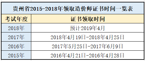 建設(shè)工程教育網(wǎng)為貴州地區(qū)的學(xué)員們統(tǒng)計(jì)了2015年至2018年貴州一級(jí)造價(jià)工程師證書的領(lǐng)取時(shí)間,具體時(shí)間表如下: