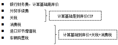 車輛購置稅 (關(guān)稅完稅價格+關(guān)稅+消費(fèi)稅)×車輛購置稅率