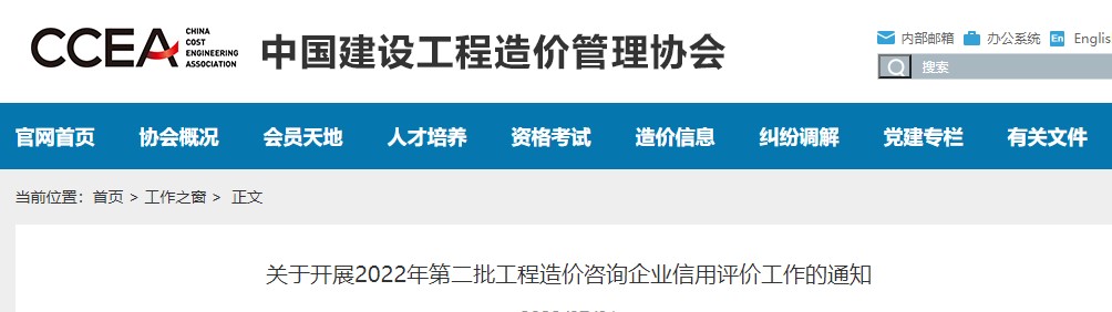 關(guān)于開展2022年第二批工程造價(jià)咨詢企業(yè)信用評(píng)價(jià)工作的通知