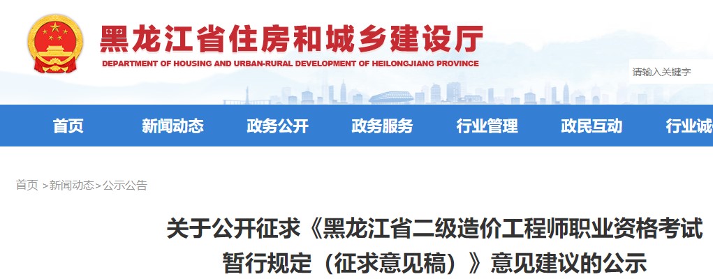 關(guān)于公開征求《黑龍江省二級造價(jià)工程師職業(yè)資格考試
