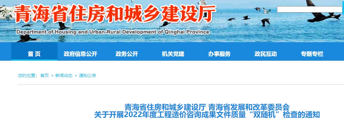 青海關于開展2022年度工程造價咨詢成果文件質量“雙隨機”檢查通知