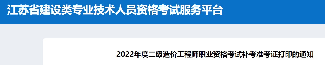 2022年度南京、蘇州、泰州二級造價師職業(yè)資格考試補考準(zhǔn)考證打印通知
