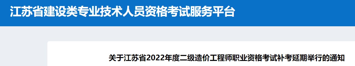 關(guān)于江蘇省2022年度二級(jí)造價(jià)工程師職業(yè)資格考試補(bǔ)考延期舉行的通知