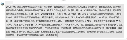 2019年度的咨詢工程師考試成績(jī)今天上午終于張榜,最終最后1科《項(xiàng)目決策分析與評(píng)價(jià)》得分89分,順利圓滿通過(guò)。起初考前模擬考試信心滿滿,但出卷老師制造了懸念,難度成幾何倍數(shù)增長(zhǎng),故近兩個(gè)月以來(lái),心里面在打鼓,得知今天通過(guò),可以圓滿拿到咨詢工程師的證書,長(zhǎng)舒一口氣,3年(第1年由于只有2個(gè)多月的時(shí)間準(zhǔn)備,故只準(zhǔn)備了《宏觀經(jīng)濟(jì)政策與發(fā)展規(guī)劃》,結(jié)果出來(lái)前,報(bào)了正保建設(shè)工程教育網(wǎng)4科,結(jié)果出來(lái)后,該科成績(jī)?yōu)?6分,該科屬純自學(xué)性質(zhì)通過(guò)的吧。2018年度,報(bào)考余下的3科,這一年度的最終成績(jī)分別為《工程項(xiàng)目組織與管理》80分,《項(xiàng)目決策分析與評(píng)價(jià)》71分,《現(xiàn)代咨詢方法與實(shí)物》80分。不灰心,也不放棄,好事多磨,2019年度繼續(xù)努力并重新出發(fā),功夫不負(fù)有心人,圓了自己咨詢工程師這一個(gè)小小的夢(mèng)想),在這里很感謝正保建設(shè)工程教育網(wǎng)的3位老師,分別為唐瓊老師,張潔函老師,林軒老師(另1位老師雖然買了教材,但未聽其課,故在這里不作過(guò)多的評(píng)價(jià),但從眾人口碑中也能感覺(jué)出來(lái),也是一位優(yōu)秀且很棒的人民教師),很感謝您們的辛勤努力及幫助,在這里真誠(chéng)的道一聲:老師辛苦了!愿貴校越辦越好,桃李滿天下!