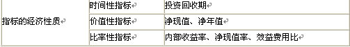 指標(biāo)的經(jīng)濟(jì)性質(zhì)時(shí)間性指標(biāo)投資回收期